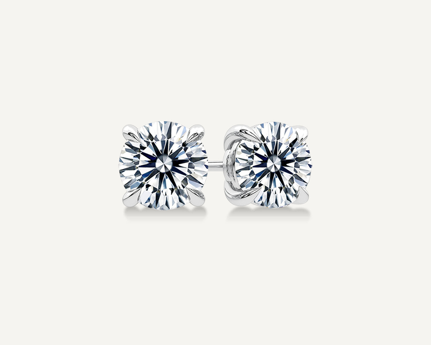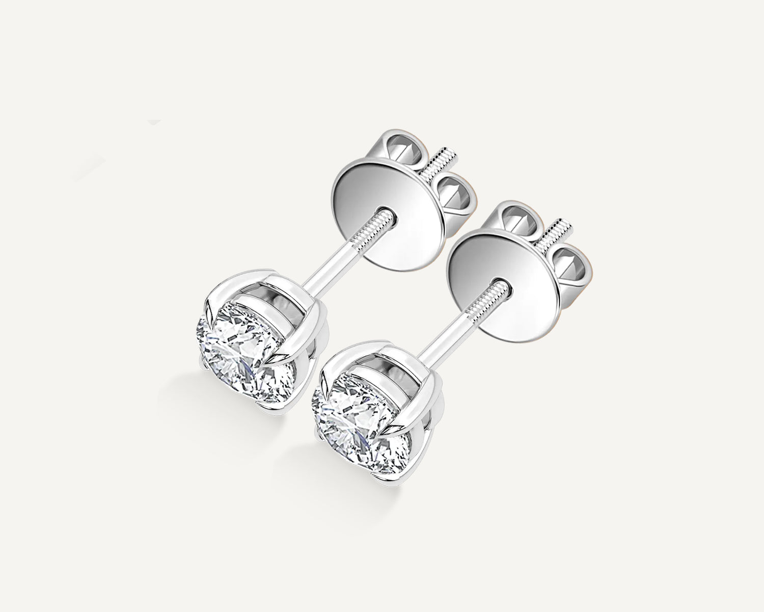 A touch of glimmering glamour for your every day. These classic 18k 4 claw-set stud earrings feature conflict-free lab-created 0.80ct F/VS2 total diamonds. All Stud Earrings have screw backs.