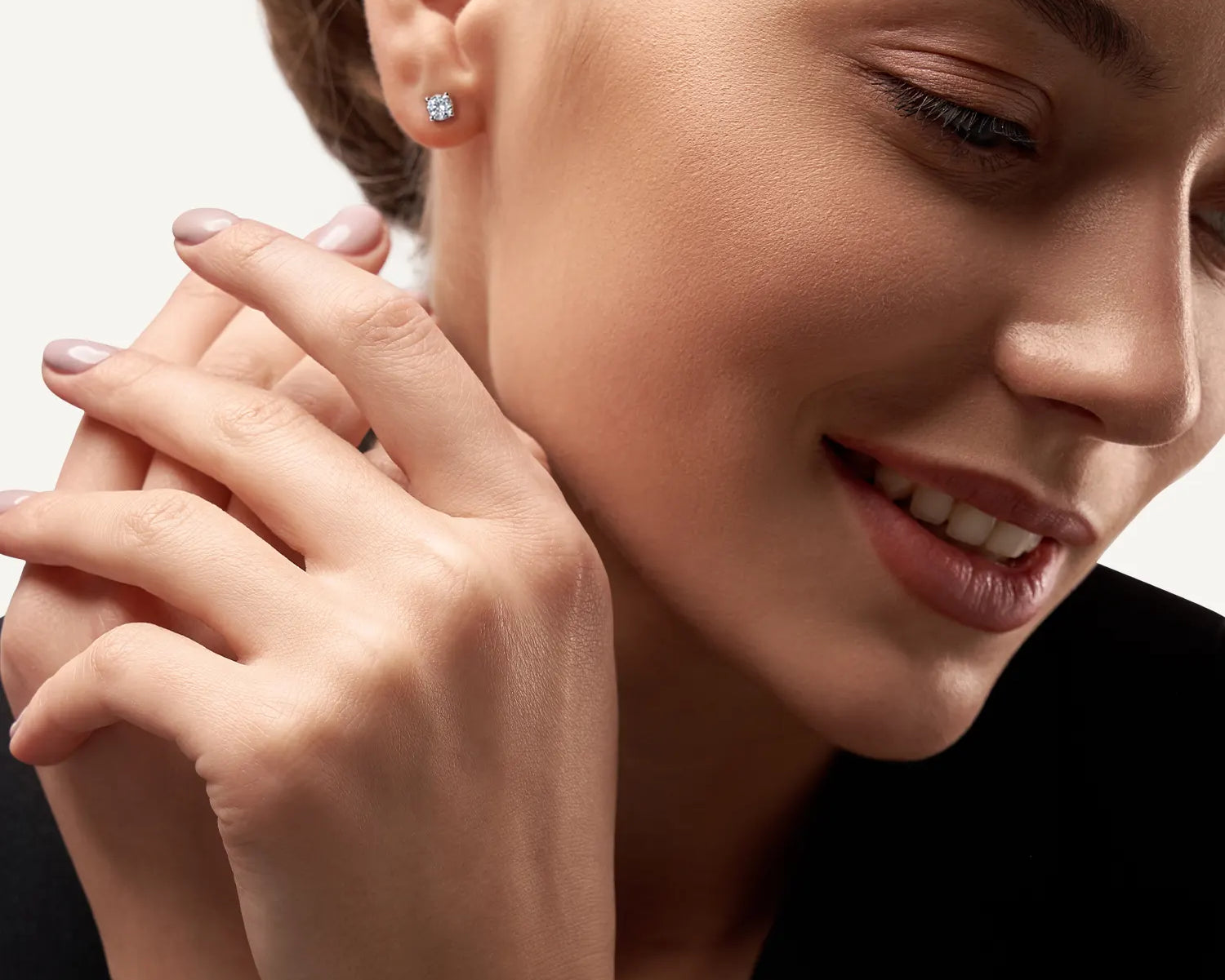These four-prong lab-created diamond studs are crafted in the martini-style setting, designed to sit perfectly balanced in the ear for greater brilliance. All Stud Earrings have screw backs.