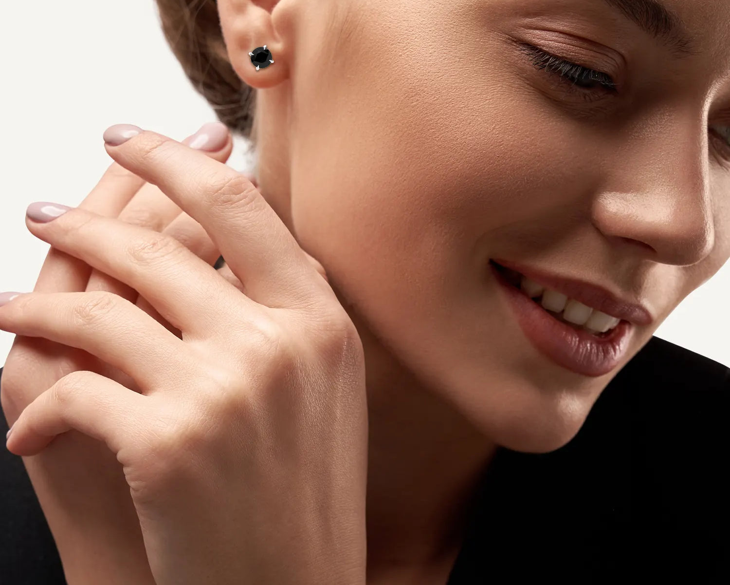 Our black diamond studs have an extraordinary deep allure, set against 18K gold settings with a total of 2.40 carat. These simple pieces look striking with all outfits, whether dreamy or dramatic.