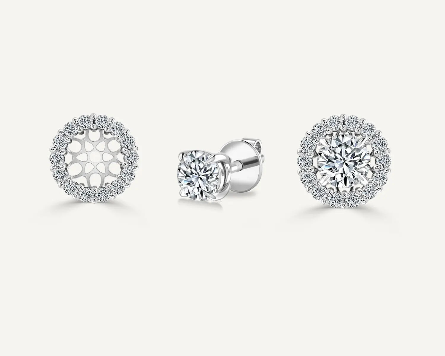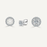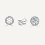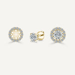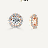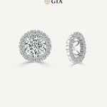 This set of natural Diamond stud earrings with halo jackets includes 2.00-carat TDW stud earrings along with 0.84ct TDW of diamond halo jackets. The center diamond stud earrings are GIA certified with F/SI2 gradings. The elevated style and shared prong setting of these diamond jackets bring out all the brilliance in the diamonds. The set comes with GIA Certificate and a complementary market appraisal.