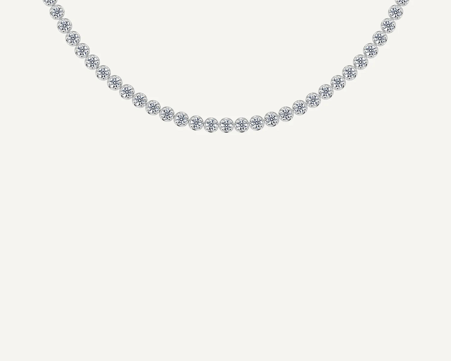 Discover our Reverence collection: delicate curved prong settings hold 6.40-carat lab grown diamonds in a 43cm length. Perfect alone or with the matching bracelet. For other necklaces with smaller, larger, or lab-grown diamonds, please click on the "Speak to Us" button.