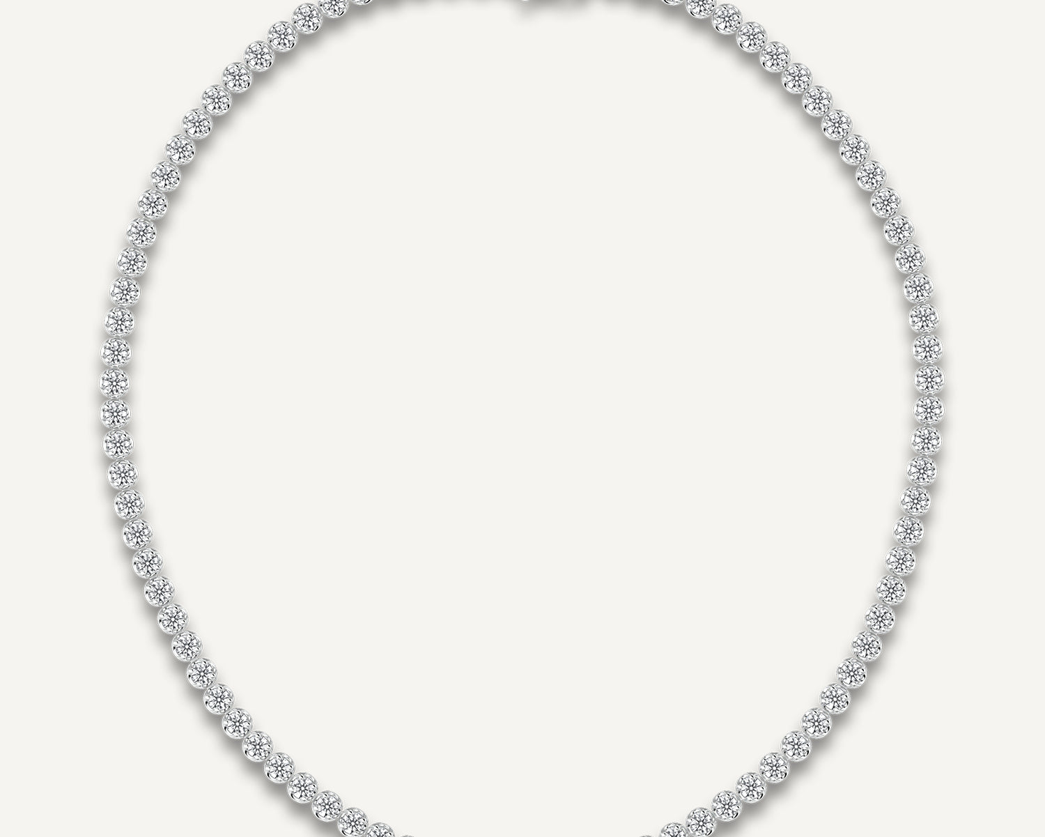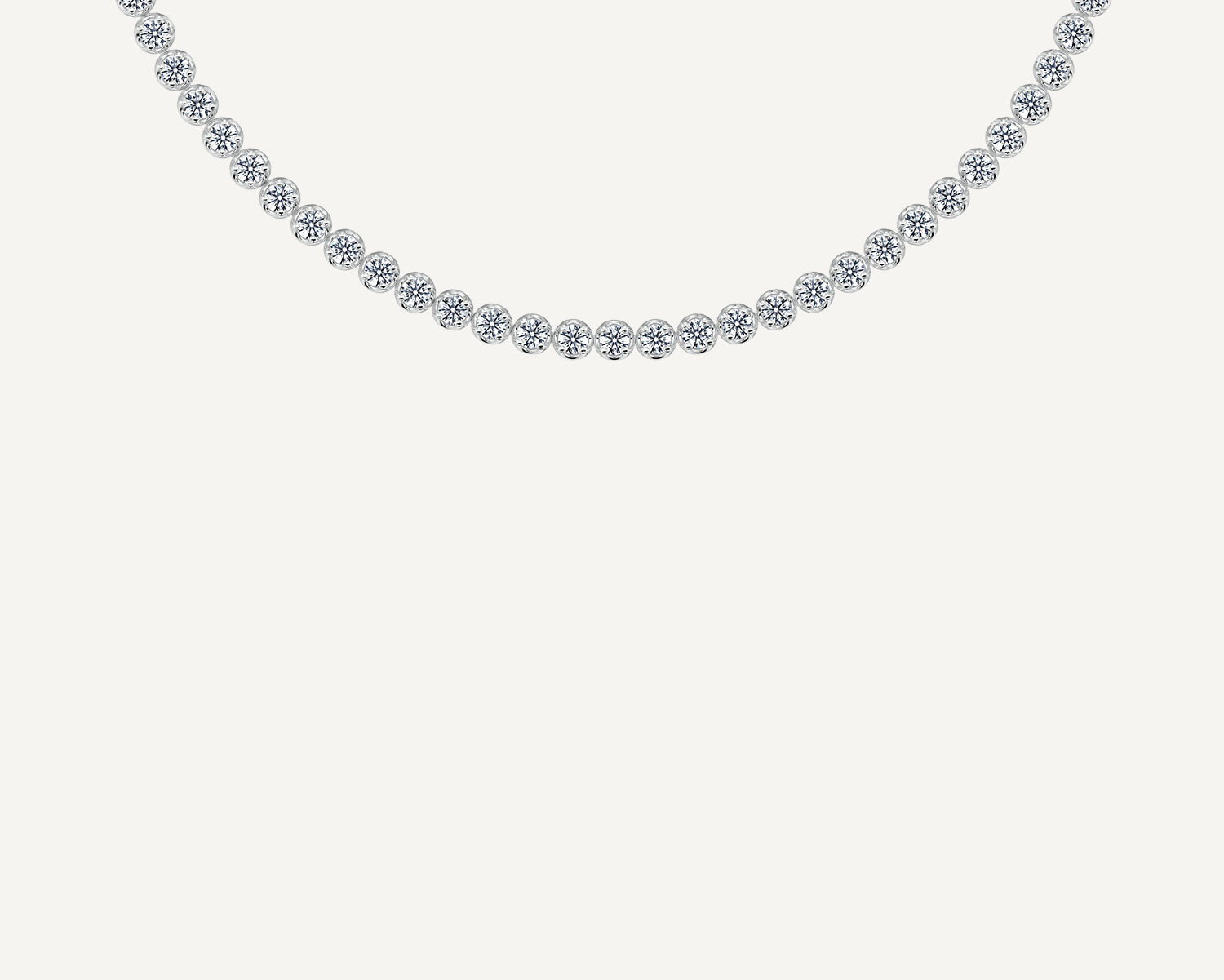 Discover our Reverence collection: delicate curved prong settings hold 9.70-carat natural diamonds in a 43cm length. Perfect alone or with the matching bracelet. For other necklaces with smaller, larger, or lab-grown diamonds, please click on the "Speak to Us" button.
