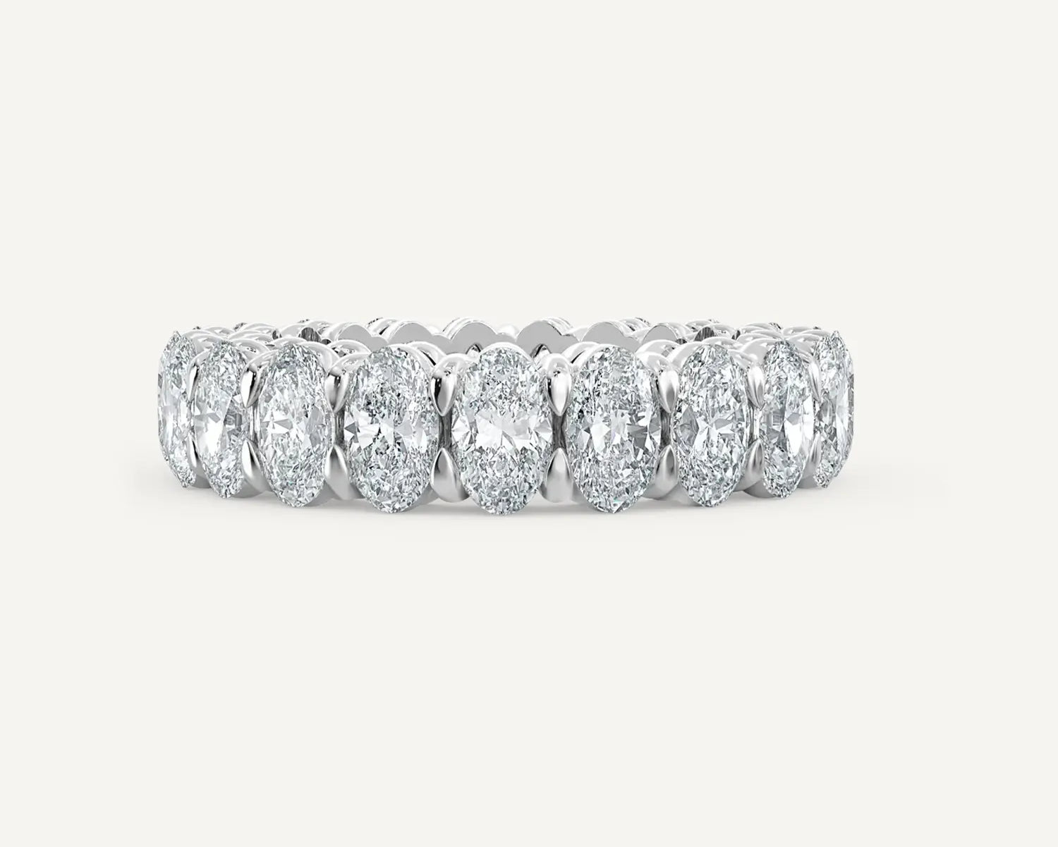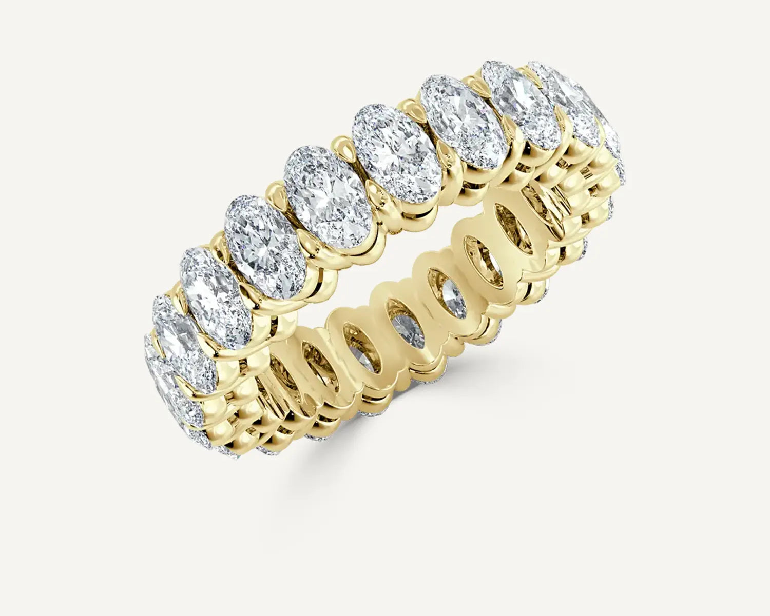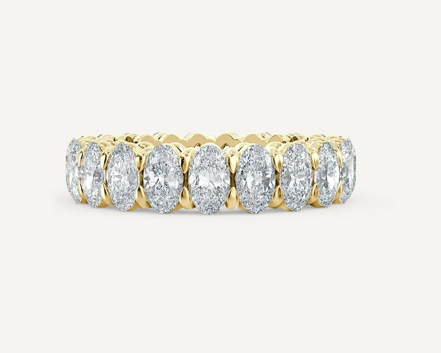 Oval-cut diamonds delight in this exclusive lab grown diamond eternity band design, crafted by hand in your choice of white, yellow & rose 14K & 18k gold. It’s the perfect eternal promise to present to your beloved for a special anniversary or any personal moment that means the world to you both. The displayed image includes:
