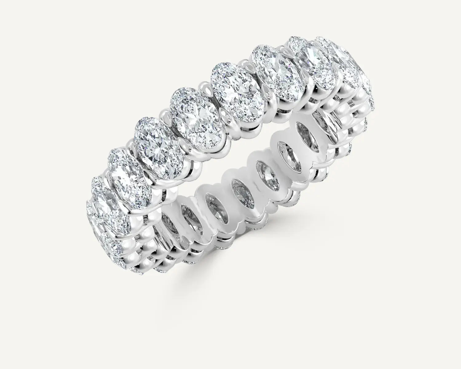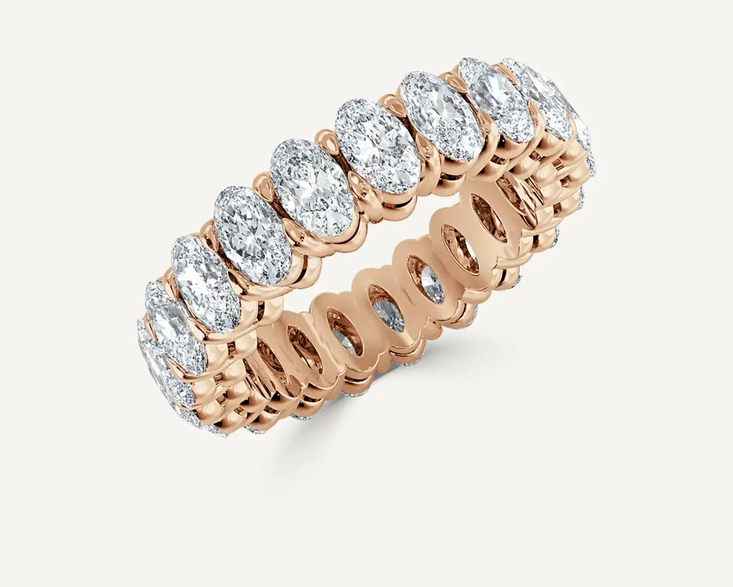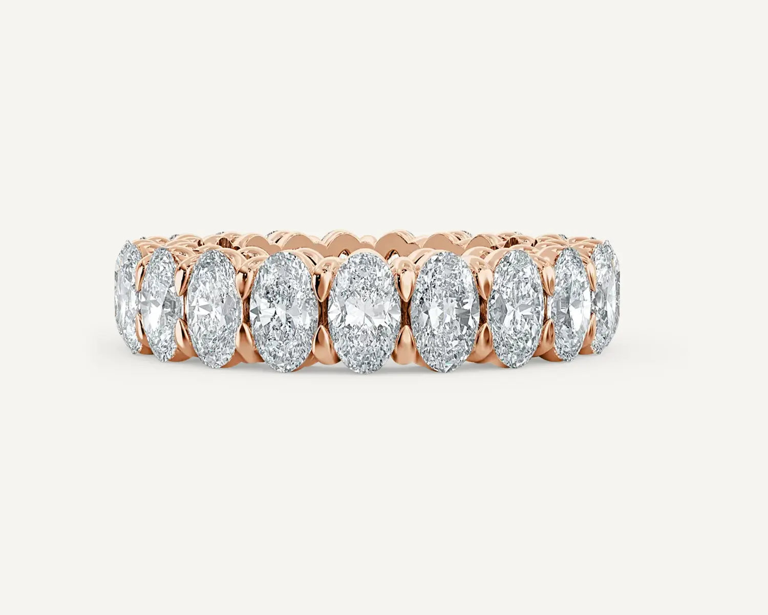 Oval-cut diamonds delight in this exclusive lab grown diamond eternity band design, crafted by hand in your choice of white, yellow & rose 14K & 18k gold. It’s the perfect eternal promise to present to your beloved for a special anniversary or any personal moment that means the world to you both. The displayed image includes: